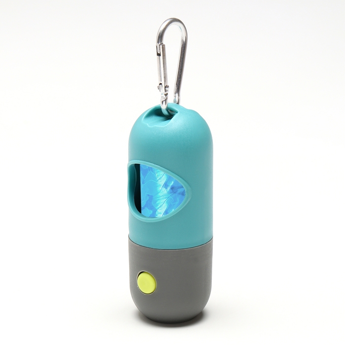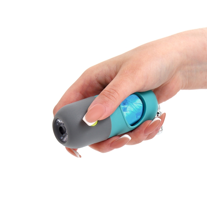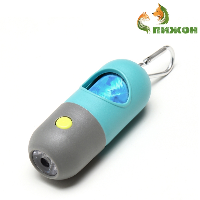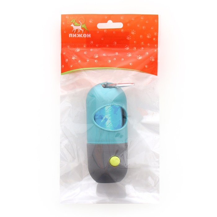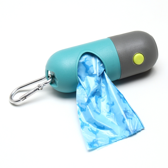Уникальная особенность контейнера — встроенный фонарик, который помогает легко находить пакеты даже в темное время суток. Набор включает 15 прочных пакетов, обеспечивающих гигиеническую уборку за вашим любимцем.