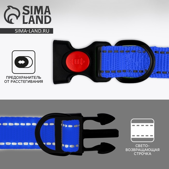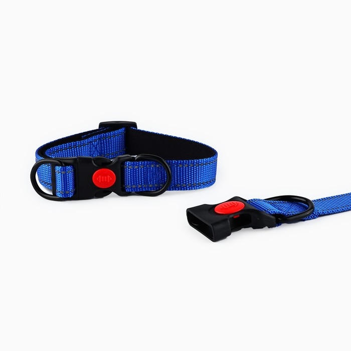 Ошейник с подкладом из нейлона с фастексом 2 см, ОШ 27-40 см, синий