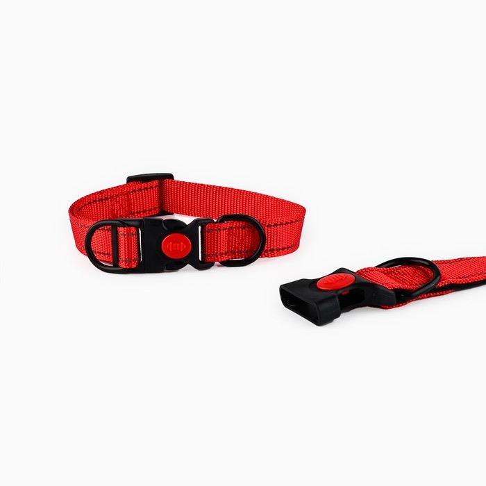 Ошейник из нейлона с фастексом 2,5 см, ОШ 31-48 см, красный