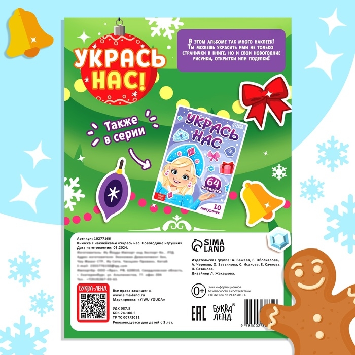 Книжка с наклейками «Укрась нас. Новогодние игрушки», 10 картинок, более 100 наклеек, 3+