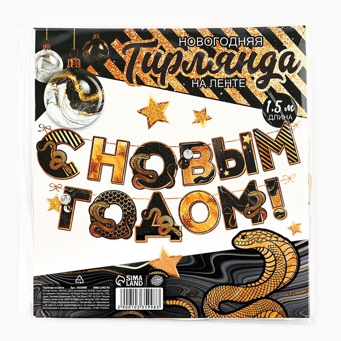 Гирлянда на ленте новогодняя «С Новым годом», на Новый год, длина 150 см
