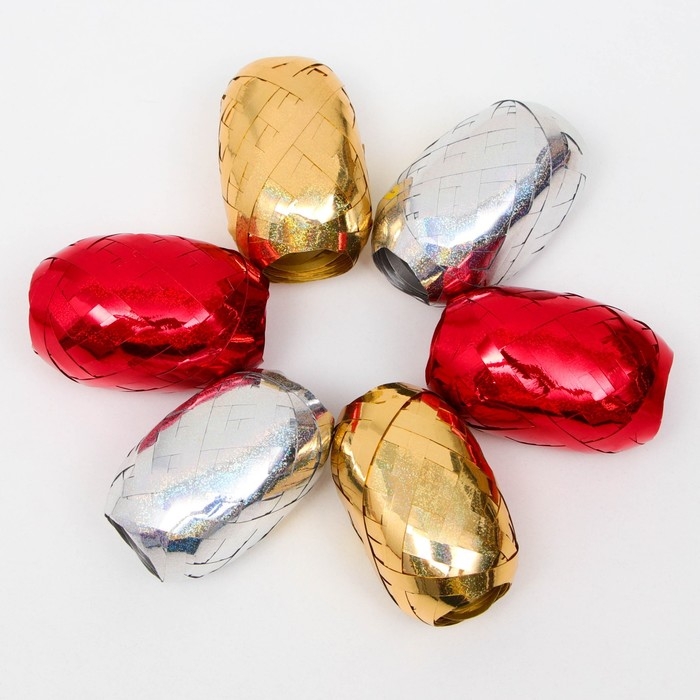 Лента упаковочная глянцевая, ассорти 0,5 см х 3 м (набор 6 цветов.)