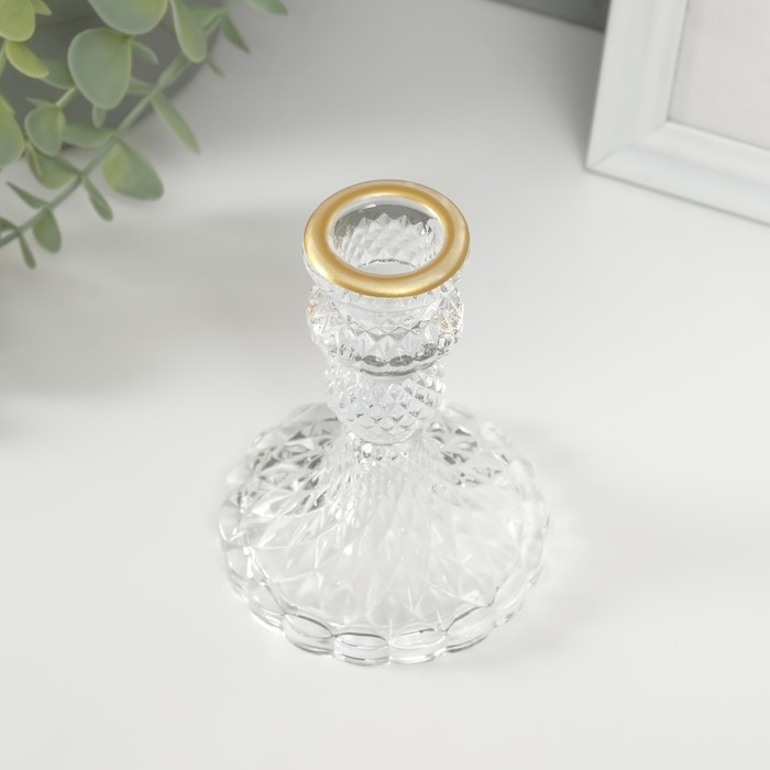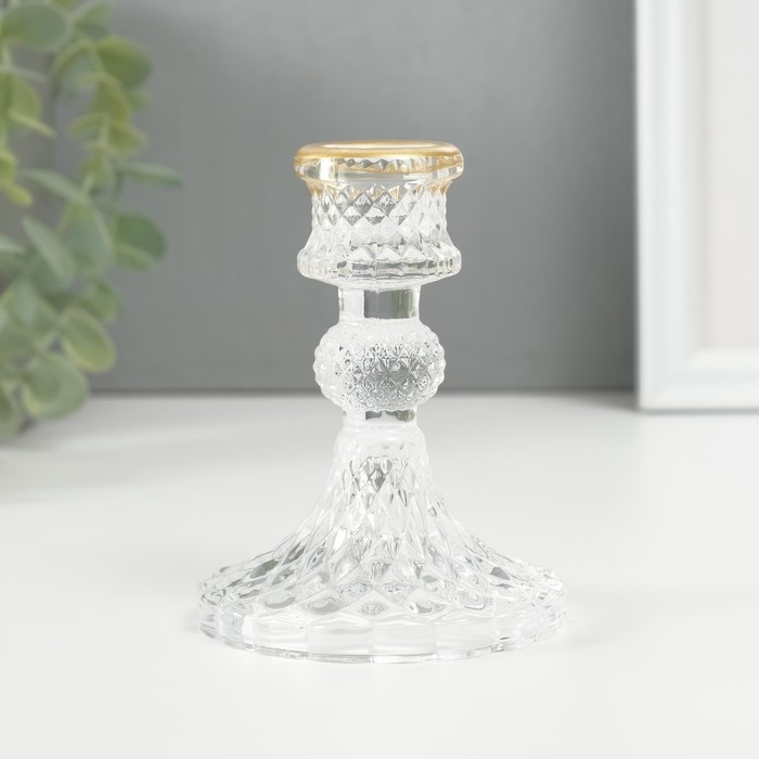 Подсвечник стекло на 1 свечу "Женева" с золотом d=2 см 10,5х7,7х7,7 см