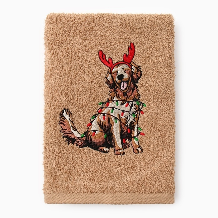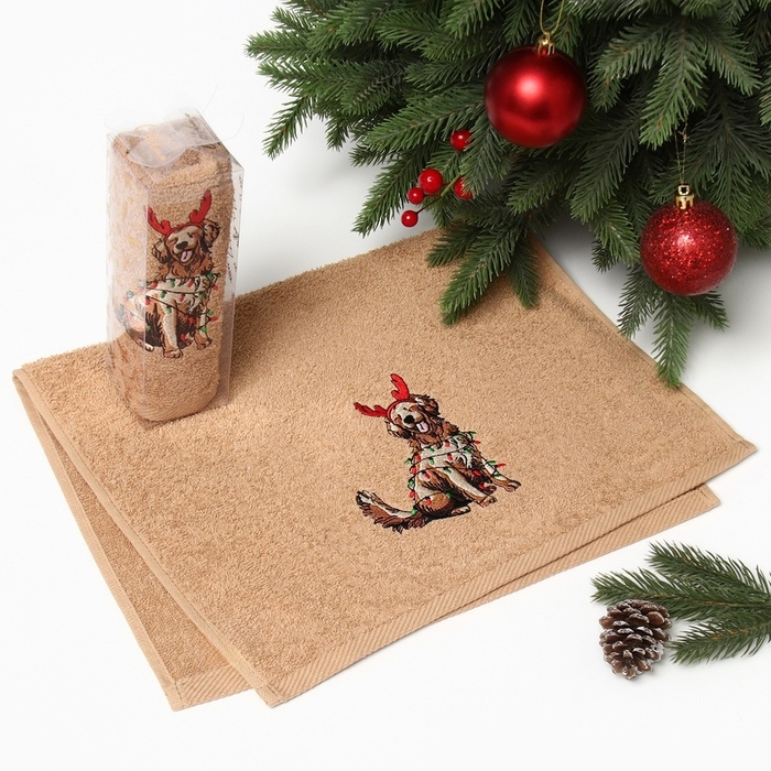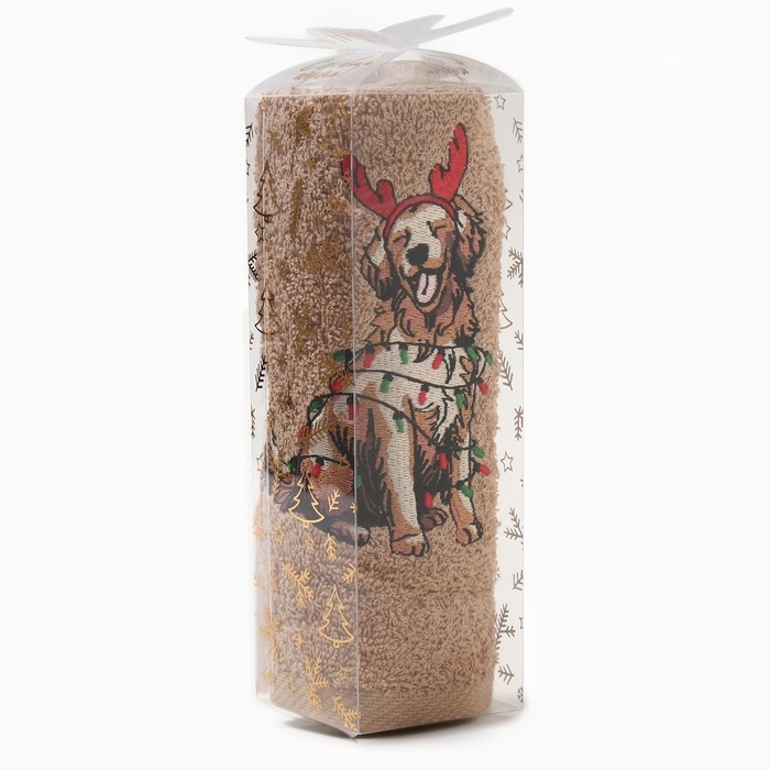 Новый год. Полотенце махровое Этель "Счастливая собака" 30х60 см, 340 г/м2, 100% хл