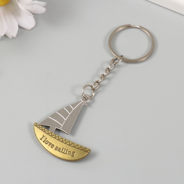 Брелок металл "Парусная лодка" парус двигается 4х3,7 см