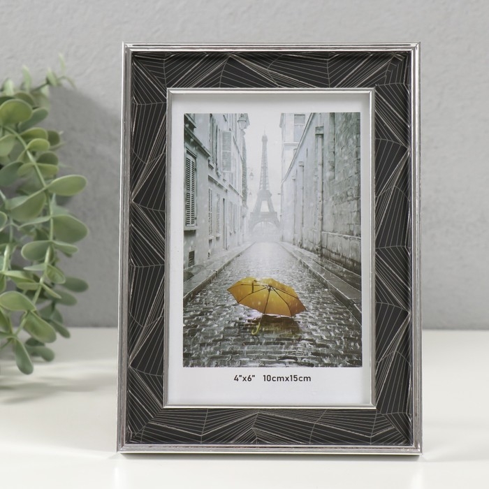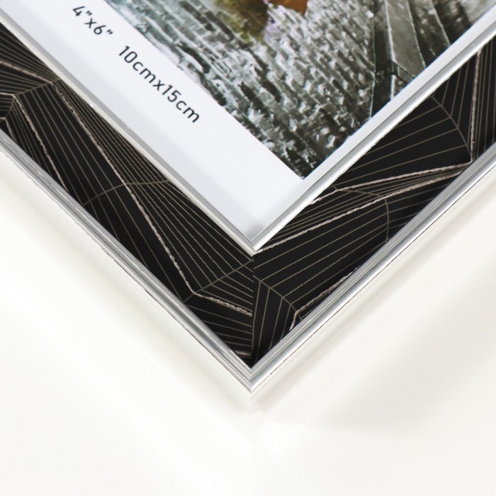 Фоторамка пластик 10х15 см "Абстракция из линий на чёрном" серебро 1,5х13,5х18,5 см