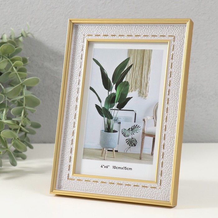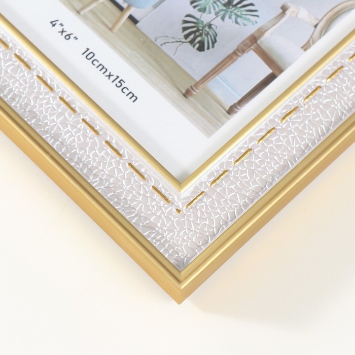 Фоторамка пластик 10х15 см "Фактура под кожу со стежками" серебро с золотом 1,5х13,5х18,5 см 10494