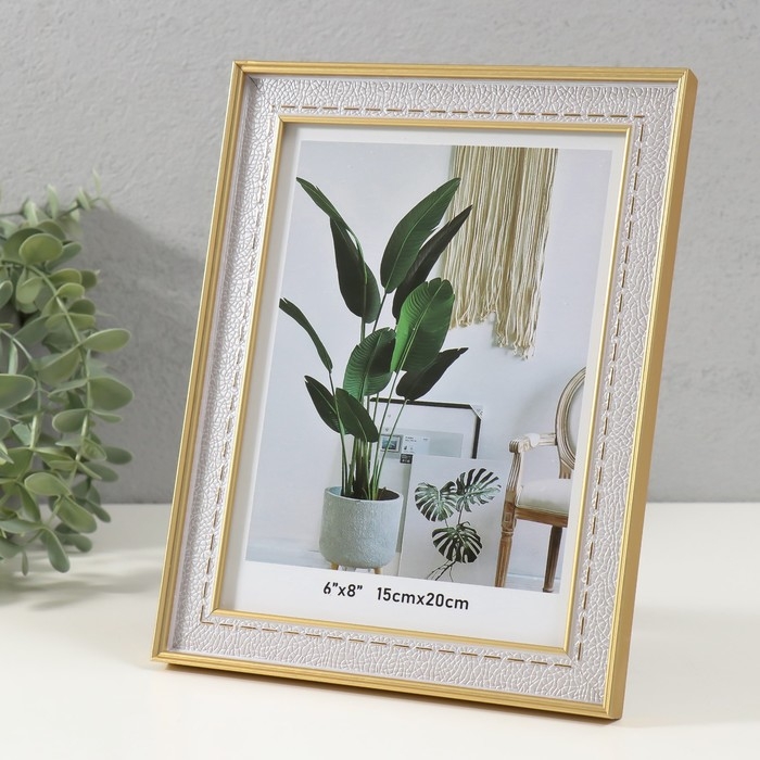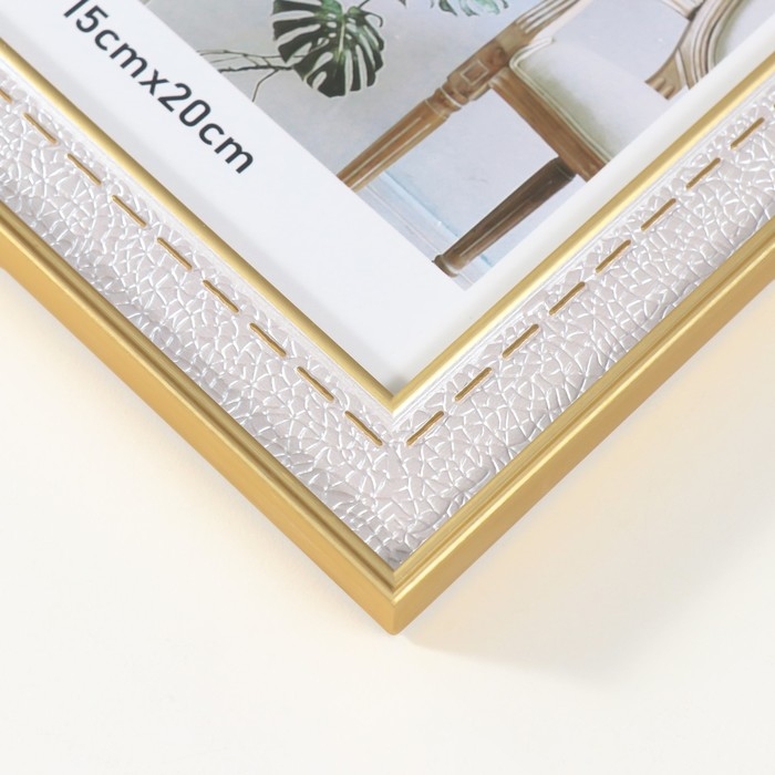 Фоторамка пластик 15х20 см "Фактура под кожу со стежками" серебро с золотом 1,5х18,6х23,6 см 10494