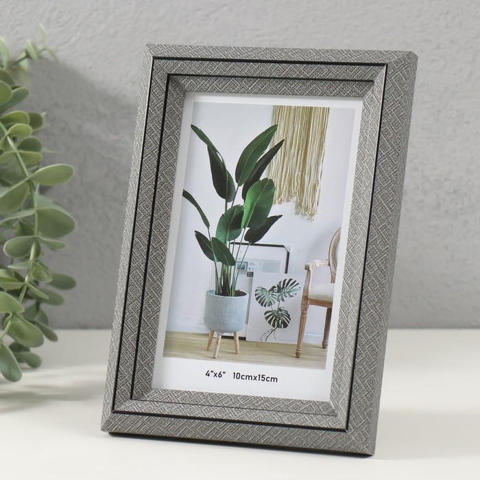 Фоторамка пластик 10х15 см "Лестница с ромбами" серая 2х13х17,9 см