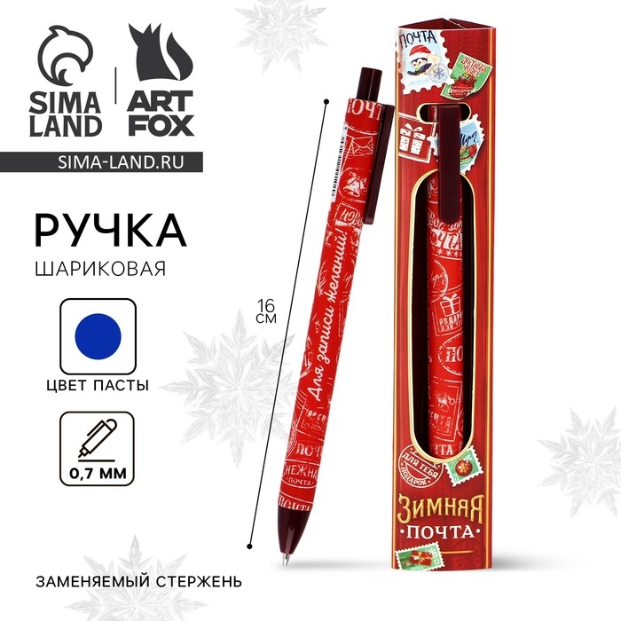Ручка шариковая автоматическая матовая в конверте «Новый год: Зимняя почта», 0,7 мм