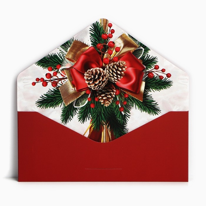 Конверт для денег подарочный «С Новым годом!», бант, софт тач, тиснение, 19 х 9.5 см, Новый год