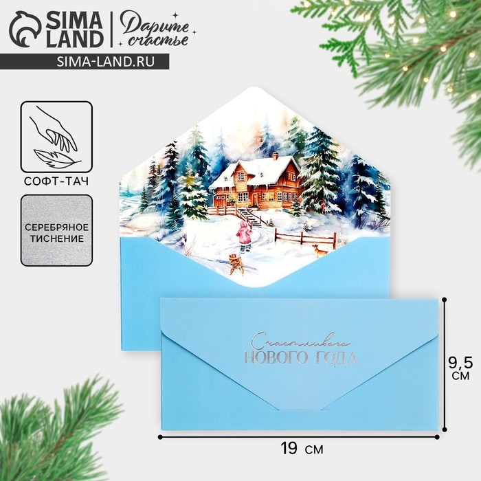 Конверт для денег подарочный «Счастливого года», домик, софт тач, тиснение, 19 х 9.2 см, Новый год