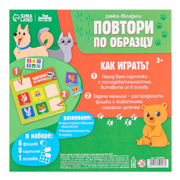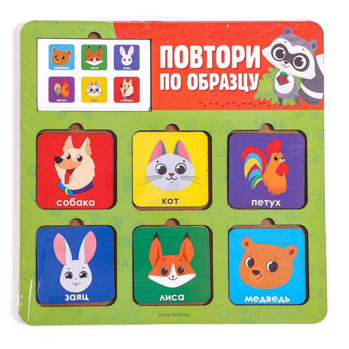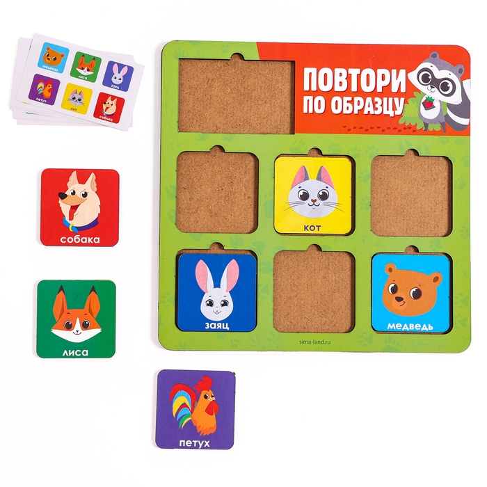 Головоломка деревянная. Повтори по образцу «Милые зверята», развивающие игры для детей