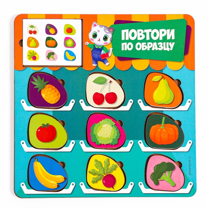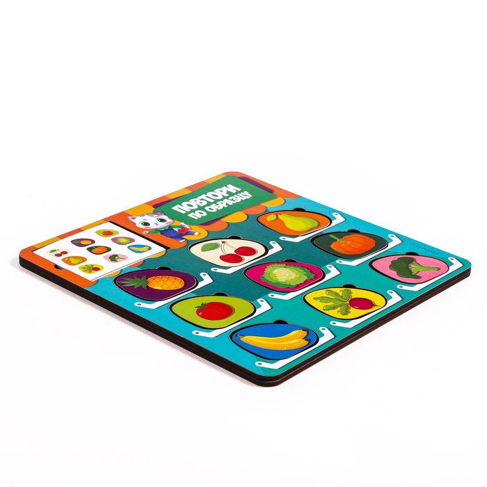 Головоломка деревянная. Повтори по образцу «Овощи и фрукты», развивающие игры для детей