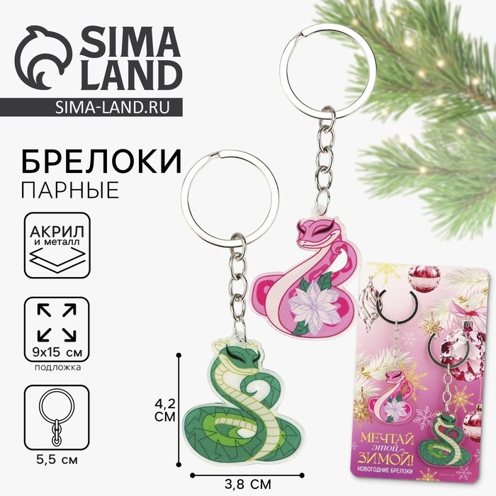 Брелок новогодний, для ключей, новогодний, парный «Мечтай этой зимой» набор 2 шт