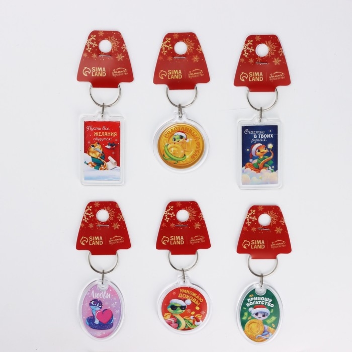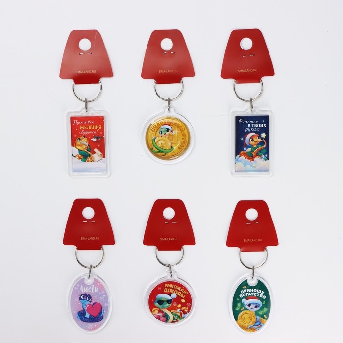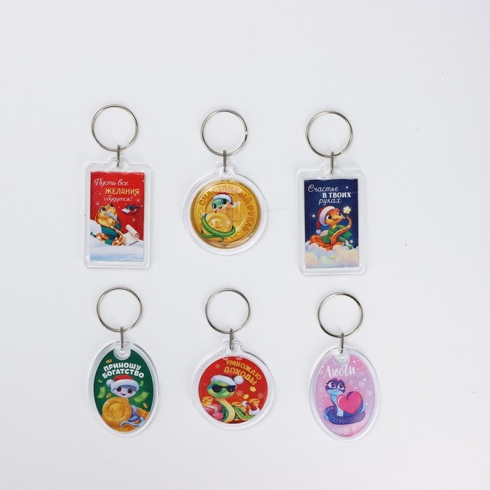 Брелок новогодний, для ключей «Счастье в твоих руках» микс из 6 шт