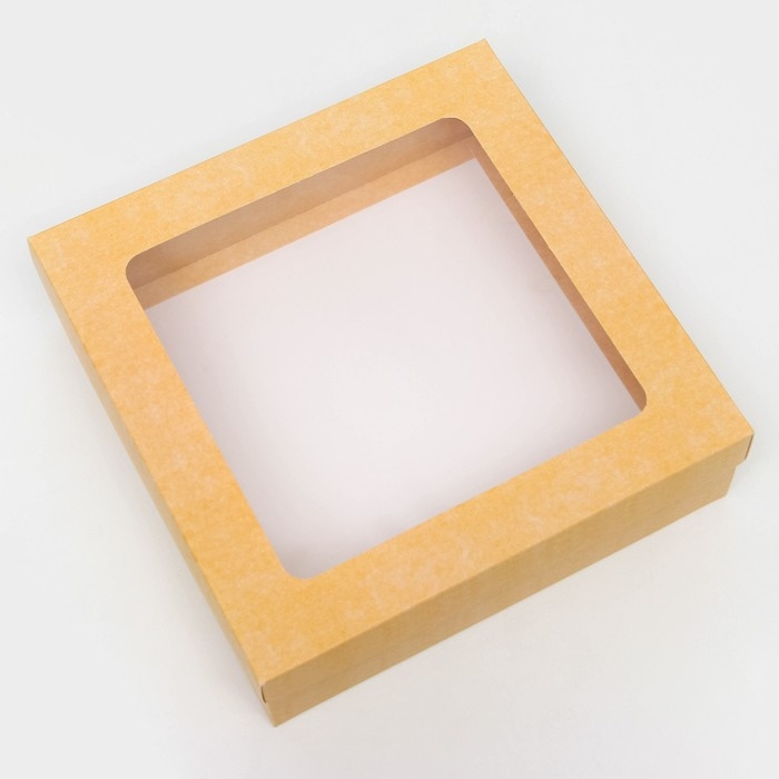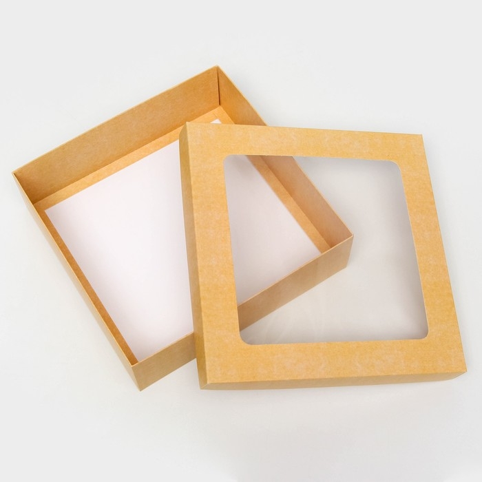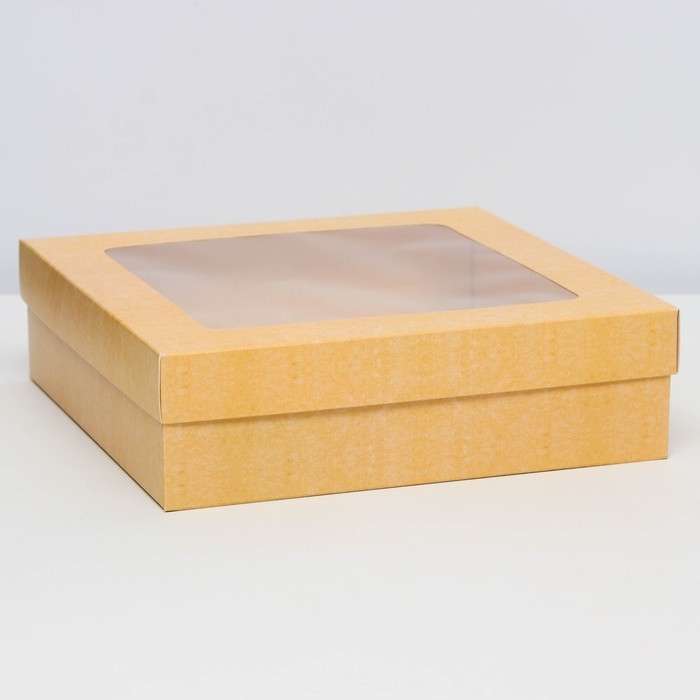 Коробка подарочная складная, упаковка, крышка-дно,с окном, крафт, 23 х 23 х 6,5 см