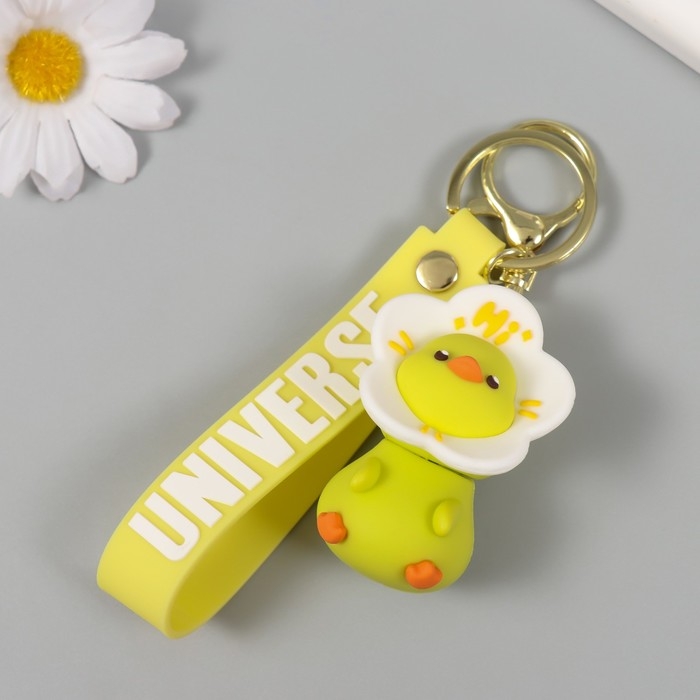 Брелок резина с карабином, ремешком "Цыплёнок в цветочке" цветочек крутится 3,5х4х6,2 см