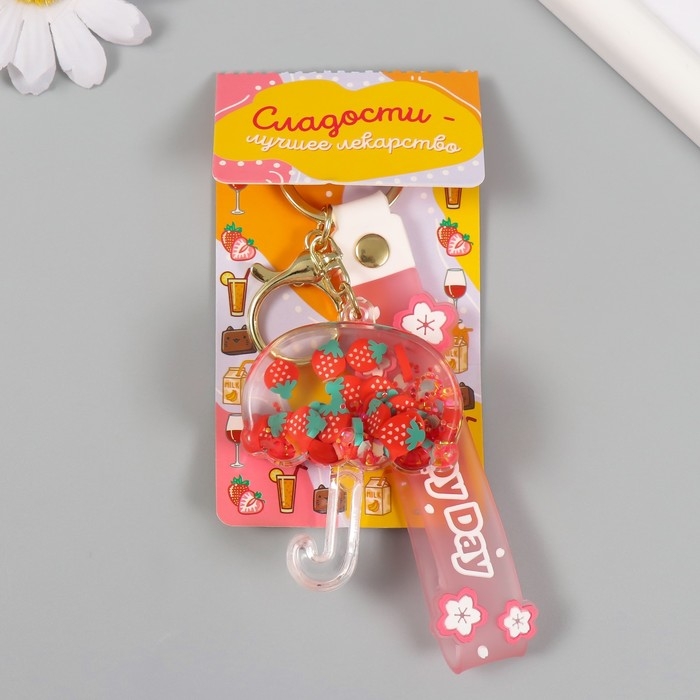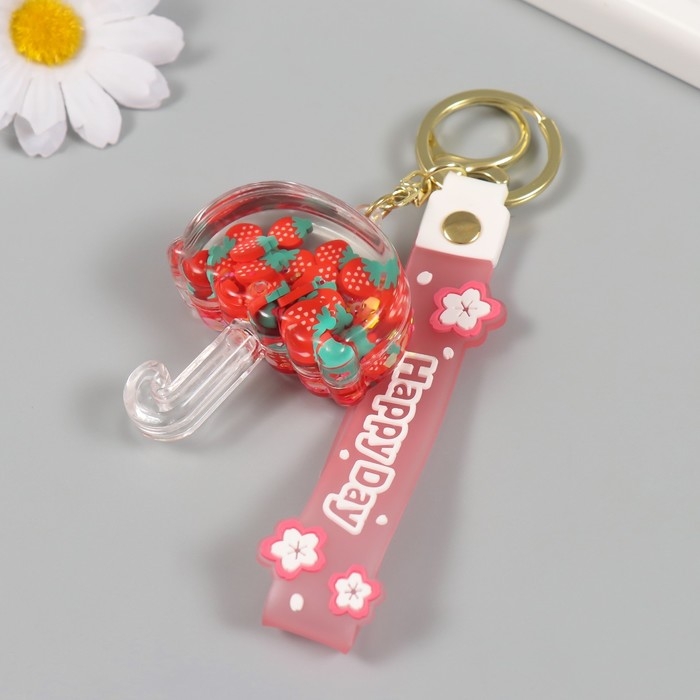 Брелок пластик с карабином, ремешком "Зонтик с клубничкой" водный с декором 6х5х2 см