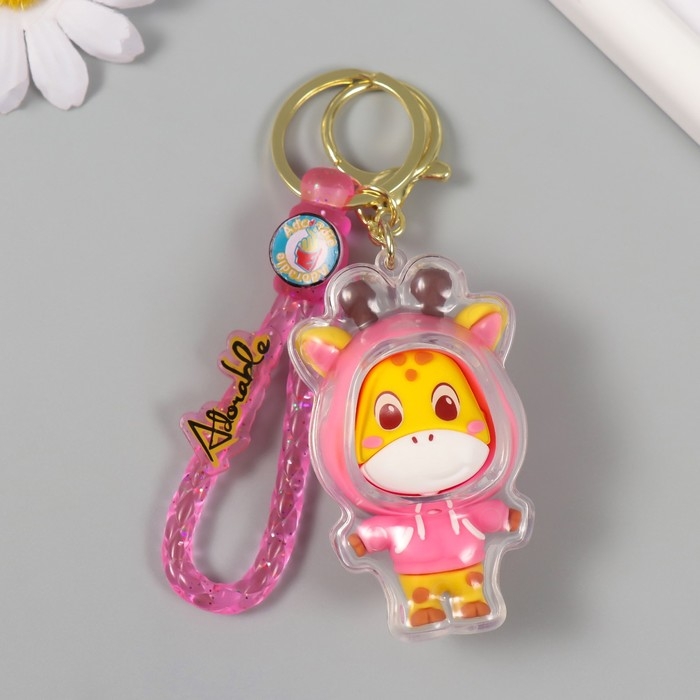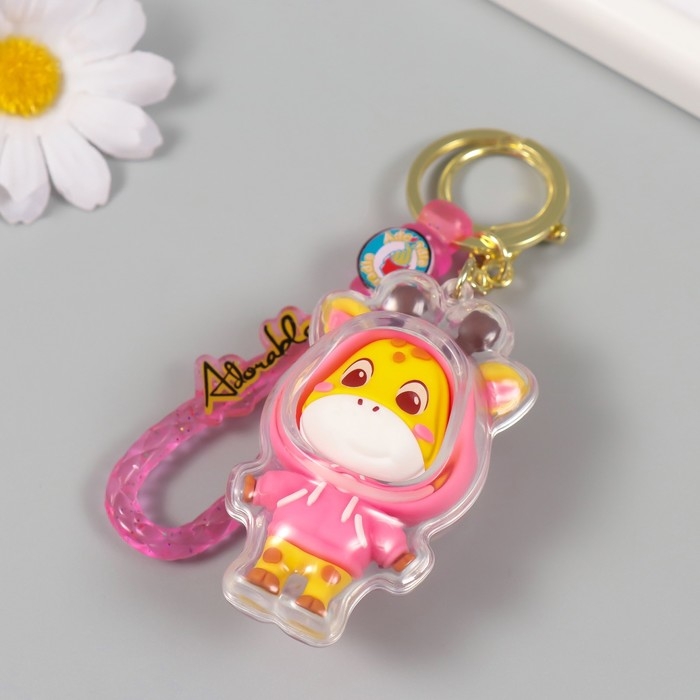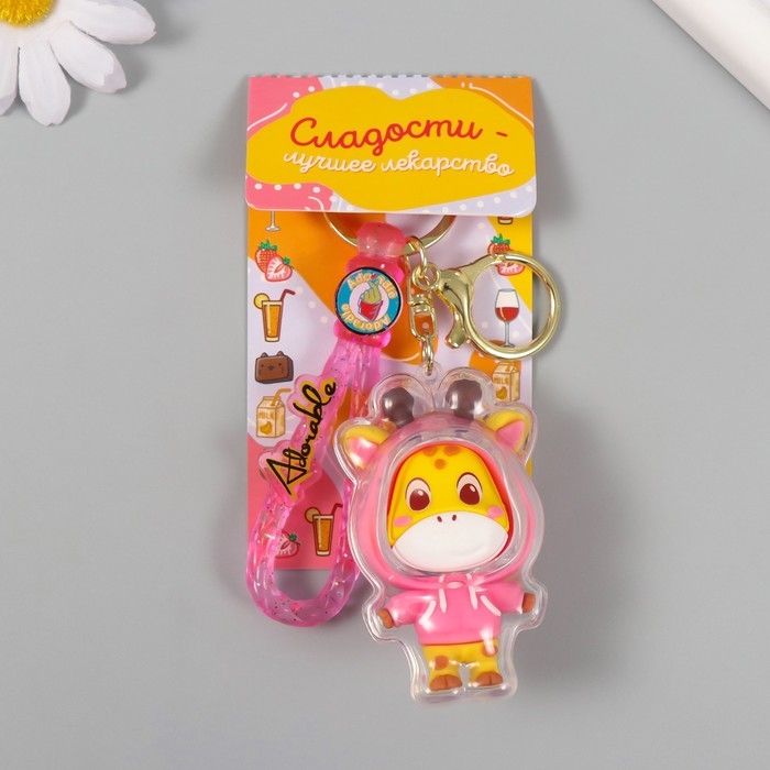 Брелок резина с карабином, ремешком "Жирафик в розовой толстовке" 7х4х3 см