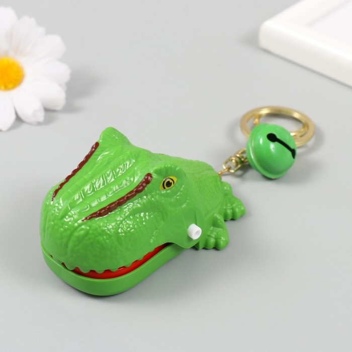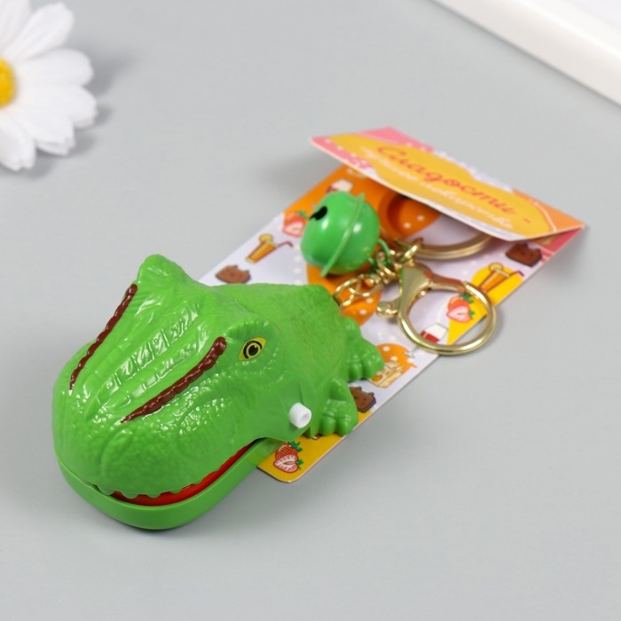 Брелок пластик с карабином "Динозавр-зубастик" закрывается при нажатии на зуб 5х7,5х4,5 см 1049898