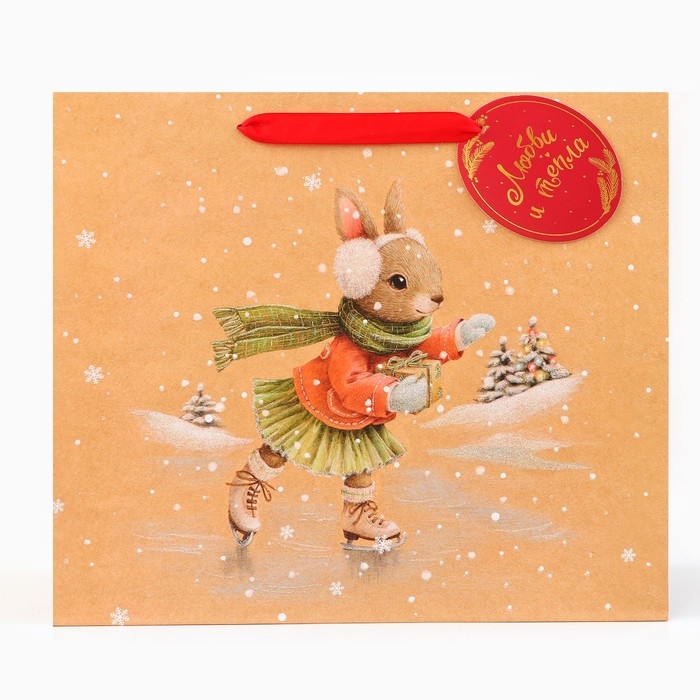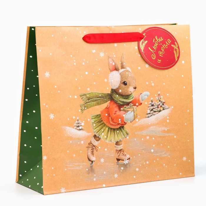 Новый год. Пакет подарочный "Зайка на льду", люкс, 36 х 32 х 12 см.