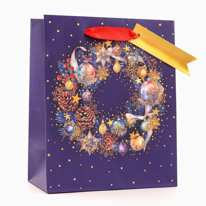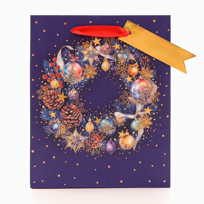 Новый год. Пакет подарочный "Праздничный венок", 18 х 22,3 х 10 см.