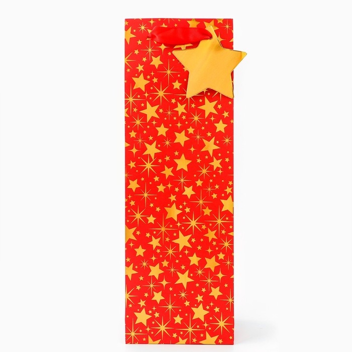Новый год. Пакет подарочный новогодний под бутылку, упаковка "Звездочки", 12 х 36 х 8,5 см.