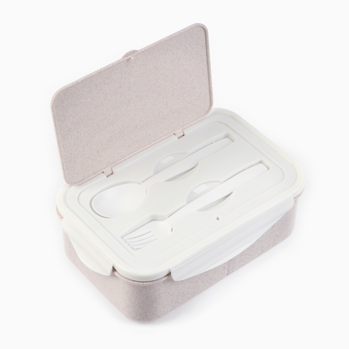 Ланч-бокс - это ручной контейнер для пищевых продуктов, используемый для транспортировки еды. Этот стильный и функциональный аксессуар станет незаменимым помощником в повседневной жизни. Ланч-бокс изготовлен из высококачественного пищевого пластика, который не содержит вредных веществ и безопасен для здоровья. Он имеет разделение на две небольшие ячейки и одну двойную, что обеспечивает удобство использования, помогая не смешивать еду и хранить продукты отдельно друг от друга. В комплект с ланч-боксом входит удобная вилка и ложка, что позволяет наслаждаться любимыми блюдами в любых условиях, без необходимости искать дополнительные столовые приборы. Вилка и ложка располагаются в верхней части крышки, они легко извлекаются из контейнера и также легко убираются обратно. Отдельное хранение приборов позволяет защитить их от загрязнений и повреждений. Контейнер легкий и прочный, обеспечивает удобное и безопасное хранение продуктов благодаря надежной крышке, предотвращающей случайные проливания. Отлично подходит для любых типов пищи, будь то салаты, супы или горячие блюда. Ланч-бокс устойчив к повышенным температурам, что позволяет разогревать его в микроволновой печи. Компактные размеры позволяют удобно разместить его в сумке или рюкзаке, а приятный бежевый цвет добавит красок в ваш день. Многоразовый вместительный пластиковый контейнер с крышкой можно брать с собой на работу и на пикник, на дачу и в школу в качестве ланч-бокса. Контейнер можно использовать не только для транспортировки еды, но и для хранения сыпучих продуктов.
