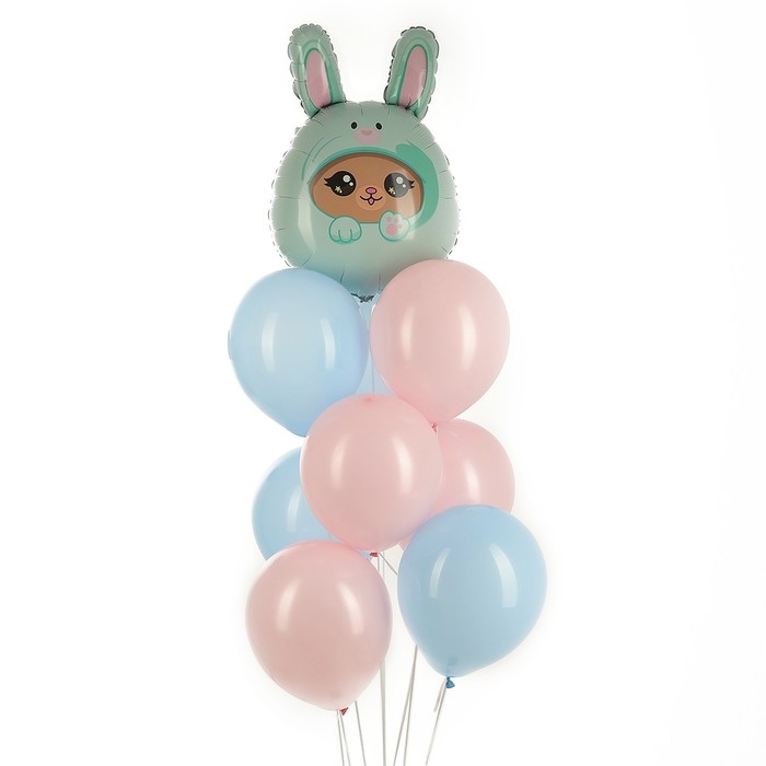 Набор воздушных шаров «Мишка в зайке», фольга, латекс, 9 шт.