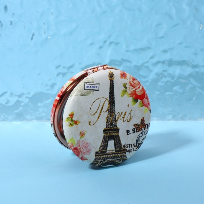Зеркало складное «Париж», d = 7,5 см, с увеличением, искусственная кожа, цвет бежевый