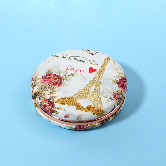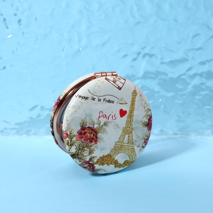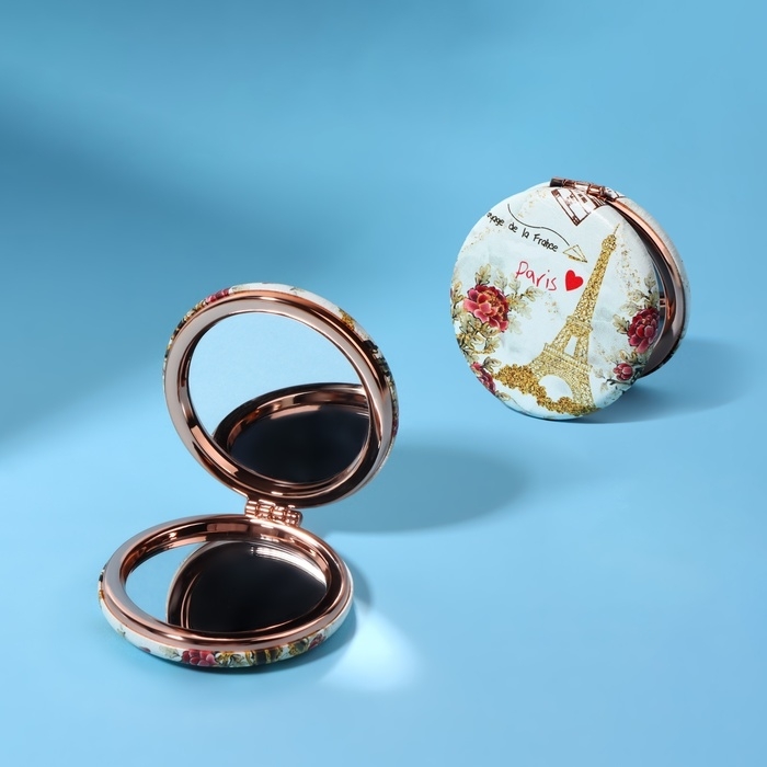 Зеркало складное «Париж», d = 7,5 см, с увеличением, искусственная кожа, цвет золотистый