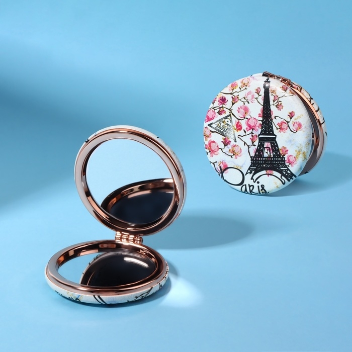 Зеркало складное «Париж», d = 7,5 см, с увеличением, искусственная кожа, цвет белый