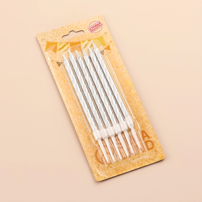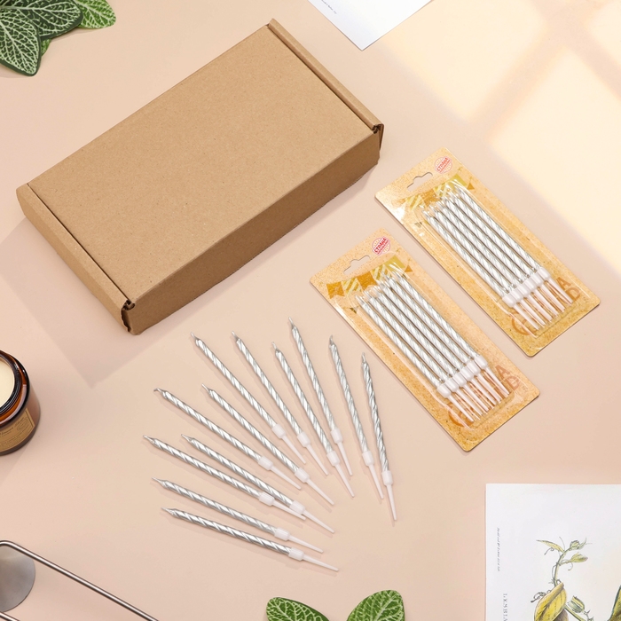 Свечи в торт "Металлик", 14 см, 12 шт, серебристые