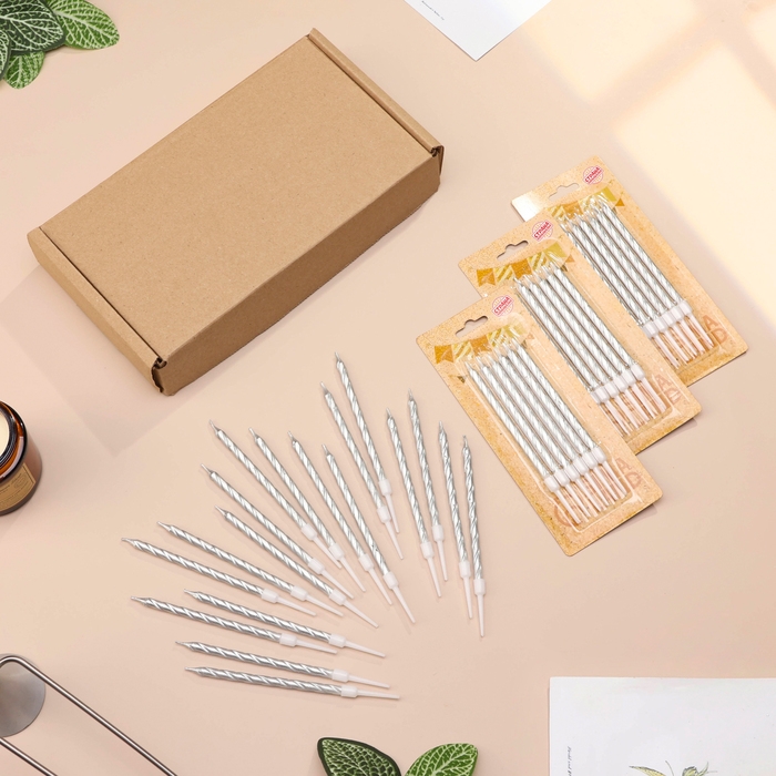 Свечи в торт "Металлик", 14 см, 18 шт, серебристые