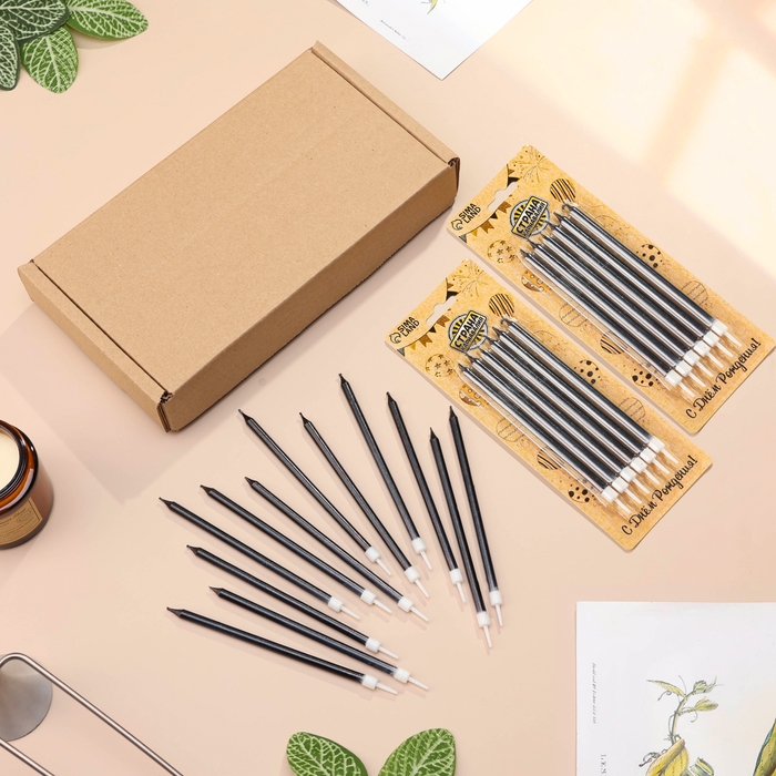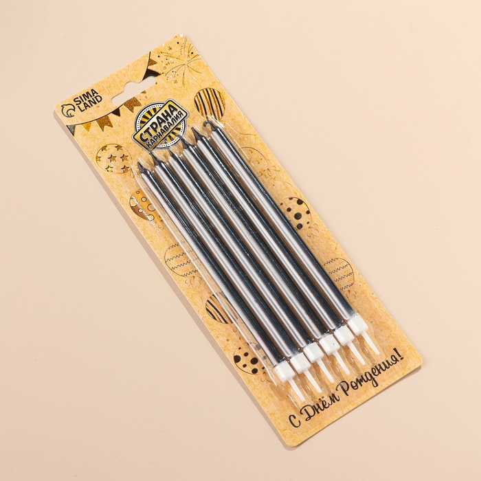 Свечи в торт "Ройс", 12,5 см, высокие, 12 шт, графит металлик