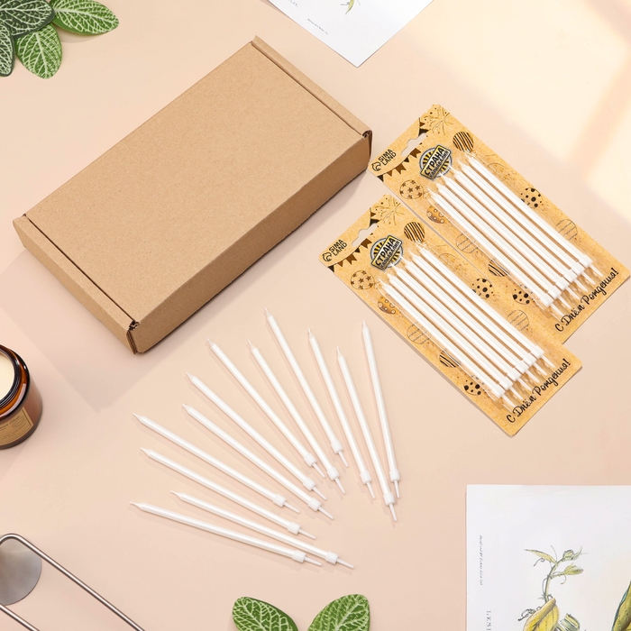 Свечи в торт "Ройс", 12,5 см, высокие, 12 шт, жемчужный металлик