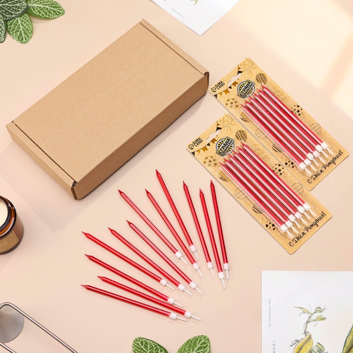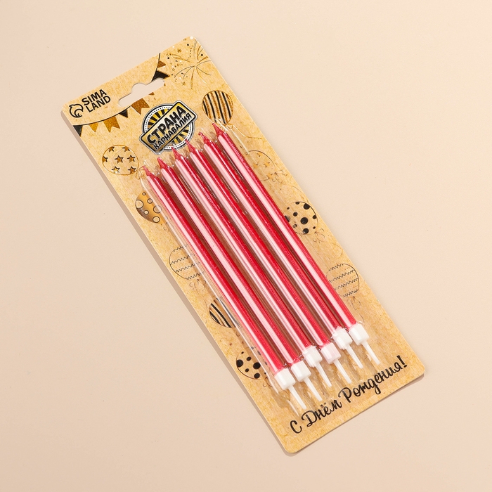 Свечи в торт "Ройс", 12,5 см, высокие, 12 шт, рубиновый металлик