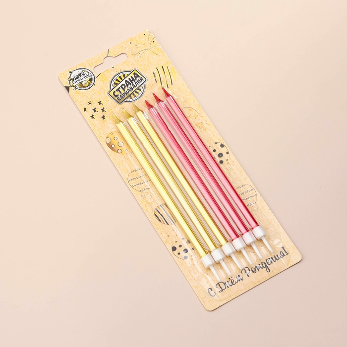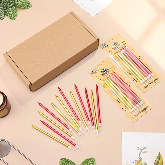 Свечи в торт "Ройс", 13 см, высокие, 12 шт, бордовые и золотые