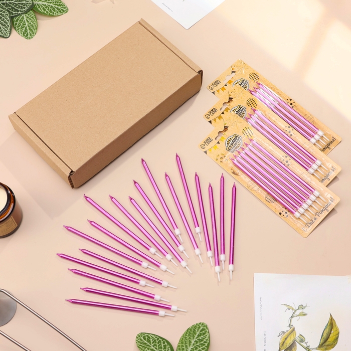 Свечи в торт "Ройс", 12,5 см, высокие, 18 шт, фиолетовый металлик
