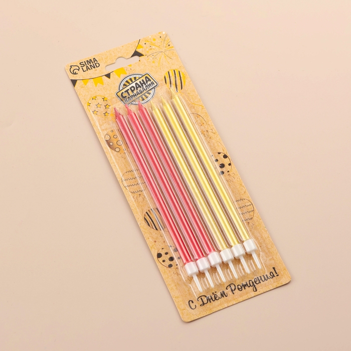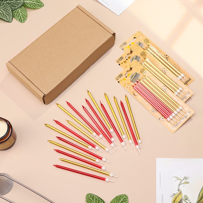 Свечи в торт "Ройс",13 см, высокие, 18 шт, бордовые и золотые