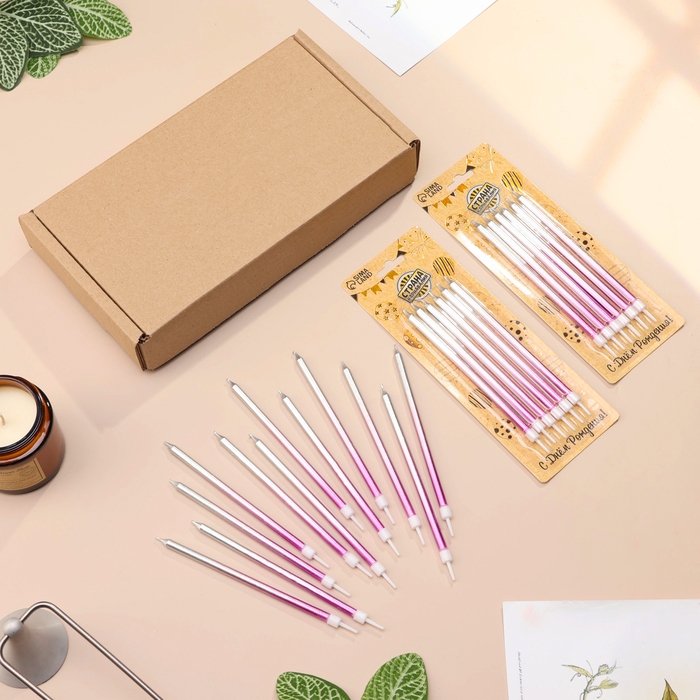 Свечи в торт "Ройс. Градиент", 13 см, 12 шт, фиолетовый, розовый, серебро