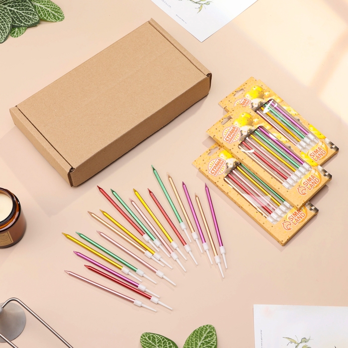 Свечи в торт коктейльные "Шайн", 10 см, 18 шт, металлик