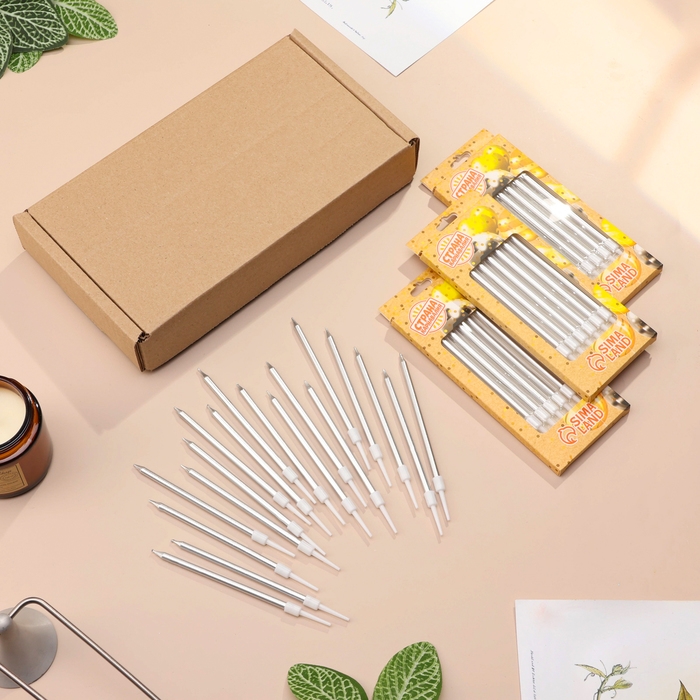 Свечи в торт коктейльные "Шайн", 10 см, 18 шт, серебряный металлик