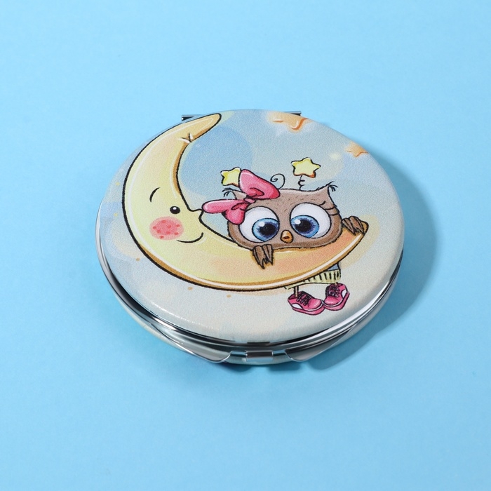 Зеркало складное «Совята», d = 6 см, с увеличением, искусственная кожа, цвет голубой