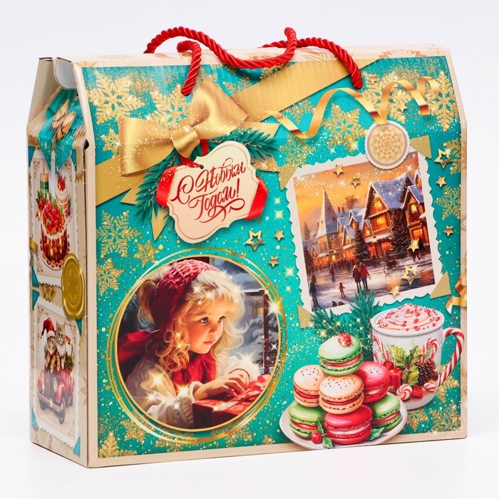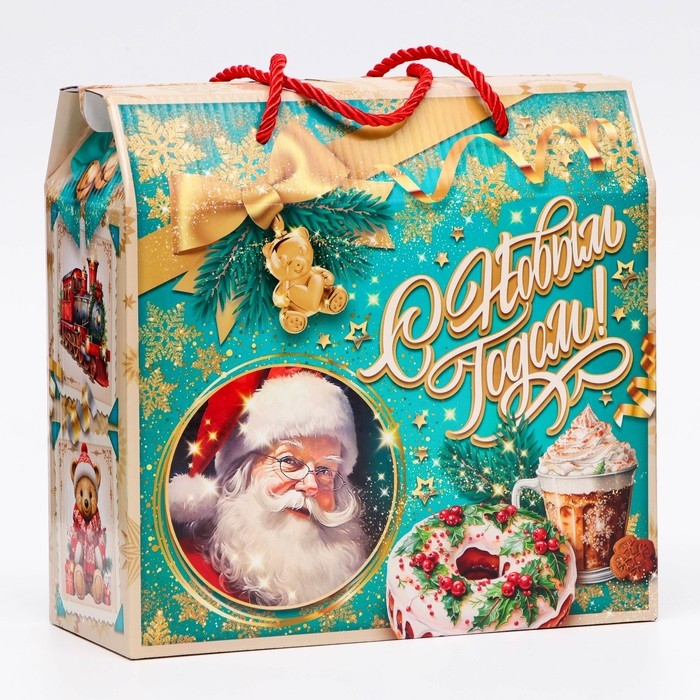 Коробка выполнена из качественных материалов, которые обеспечивают сохранность содержимого. Она имеет яркий и красочный дизайн, который отражает атмосферу Нового года.