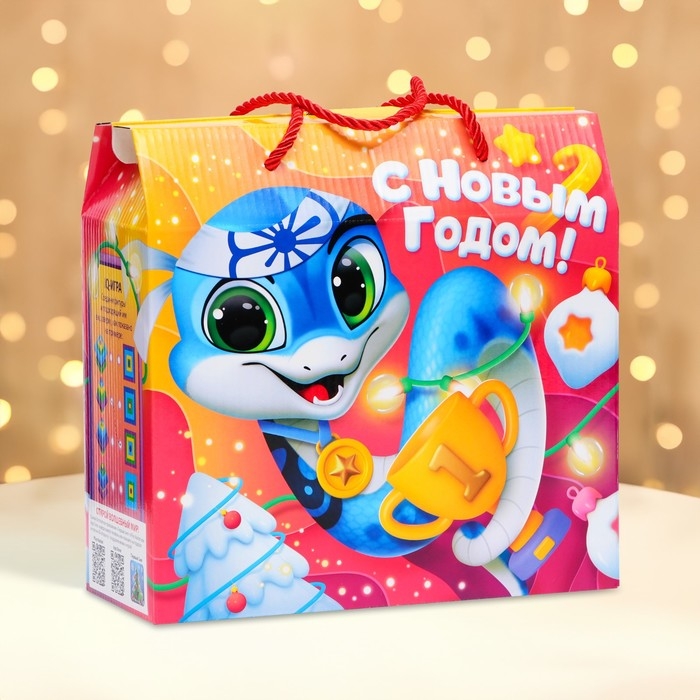 Новый год. Подарочная коробка новогодняя Чемпион 23 х 10 х 22 см.
