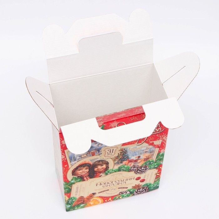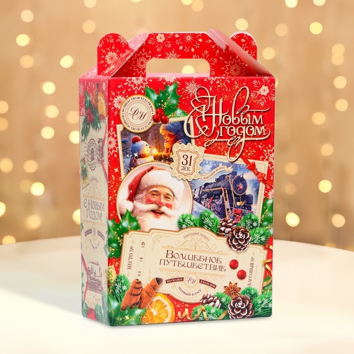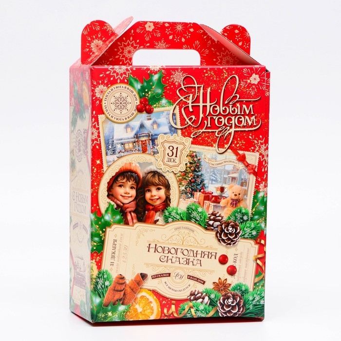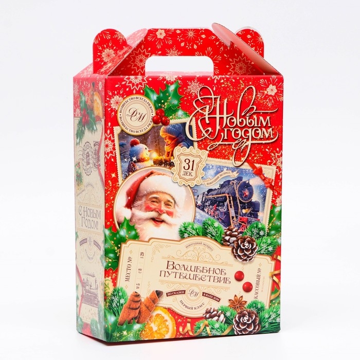 Коробка выполнена из качественных материалов, которые обеспечивают сохранность содержимого. Она имеет яркий и красочный дизайн, который отражает атмосферу Нового года.