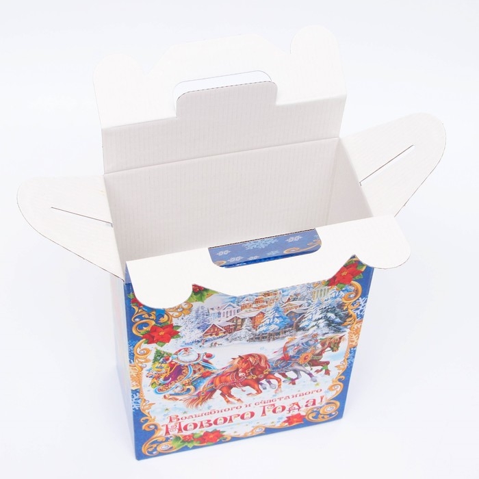 Коробка выполнена из качественных материалов, которые обеспечивают сохранность содержимого. Она имеет яркий и красочный дизайн, который отражает атмосферу Нового года.