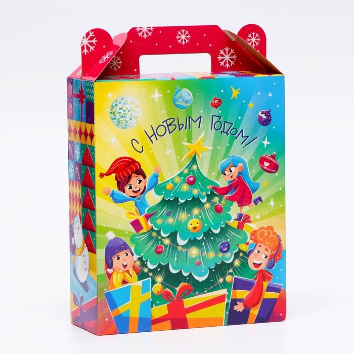 Подарочная новогодняя коробка предназначена для использования на утренниках и для подарков под ёлку для детей. Эта коробка создана специально для того, чтобы сделать праздник еще более ярким и запоминающимся.